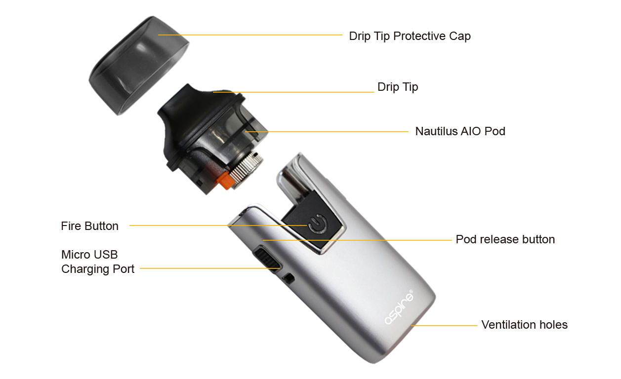 Aspire Nautilus AIO Pod,bilinenlerin dışına çıkarak 4.5ML Salt likit kapasitesi ve 1000mah pil bataryası ile sınırları aşmış ve kullanıcıların günlük ihtiyacını oldukça karşılar bir cihaz karşımıza sunmaktadır.Nautilus AIO Pod önceki podlarındaki eksi yönleri bu üründe kullanmayarak daha önce tecrube ettiği tüm konularda başarıyla not almış bir ürün vermiştir.Modern ve eşsiz tasarımı oldukça beğenilen Nautilus AIO Pod ürünü günlük kullanıma oldukça uygundur.