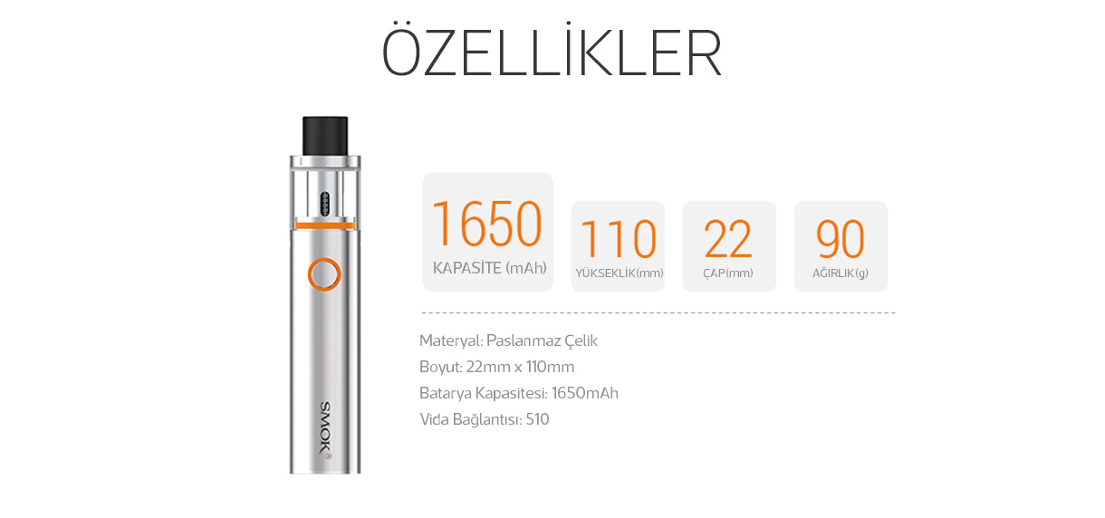 SMOK VAPE PEN 22 CİHAZININ TÜM ÖZELLİKLERİ VE BİLGİLER İÇİN BURAYA TIKLAYINIZ.