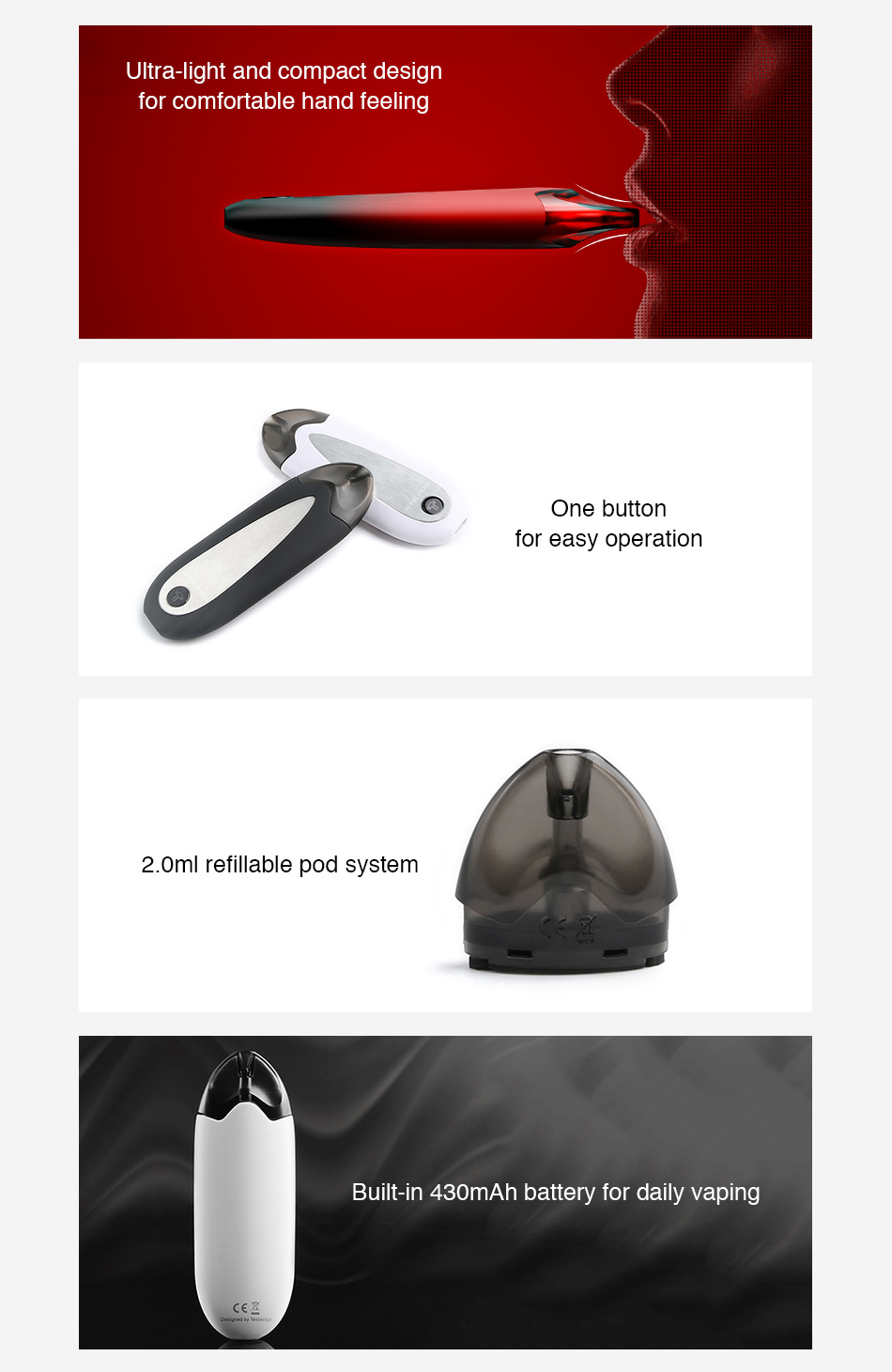 bir pod e-sigara modelidir. Küçük ve hafif olmasına karşın 2 ml salt likit