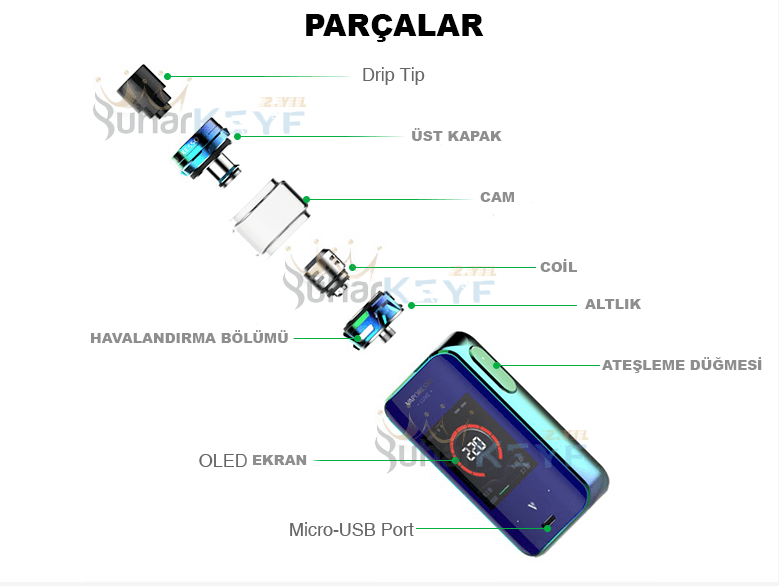 - Kartuş çatlama problemi yüksek watta kullanmak ile, yanlış likiti tüketmek ile alakalıdır. İade/değişim kapsamına girmemektedir.