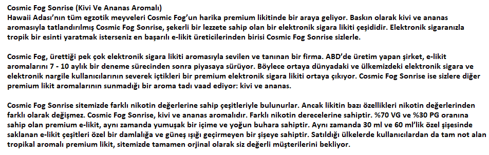 - Herkesin damak tadı farklı olduğu için maalesef bu konuda yardımcı olamıyoruz. Lütfen seveceğinizi düşündüğünüz aromalarda likit tercih etmeye çalışın.